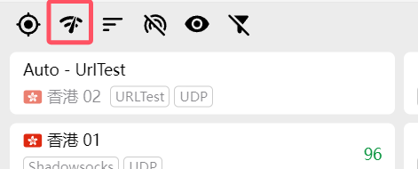 点击左边的代理,然后点击延迟测试的按钮,并连接上一个延迟不是-1的节点